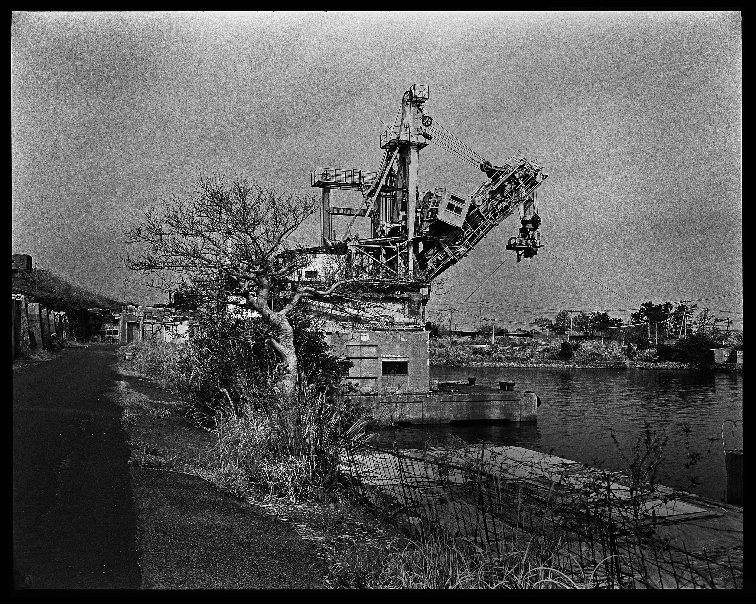 Ikeshima is a small island in Nagasaki Prefecture. It used to be a mining town of 8,000-10,000 people. Now around 100 people and many many cats live there. It’s a beautiful place, quiet and peaceful. Much of the old machinery and equipment is still in-situ, although it hasn’t been used since maybe 1970. I wanted to show the similarities, at least aesthetically, between the crane and the tree. Both have been living side by side for a long time. I used a Pentax 6x7 with a 75mm Takumar lens, Tri-X, and Rodinal.